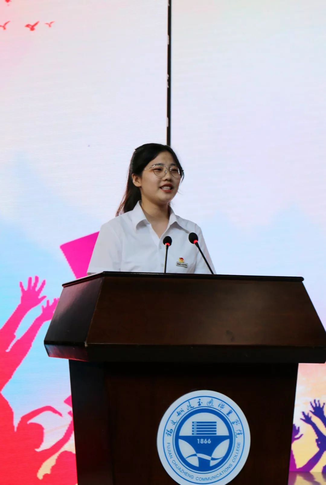 畢業(yè)典禮在莊嚴(yán)的《國歌》聲中拉開帷幕。院領(lǐng)導(dǎo)為畢業(yè)班學(xué)生代表頒發(fā)畢業(yè)證書。畢業(yè)生代表黃錦、在校生代表張宇昂、校友代表林莉莉、教師代表陳麗娟分別在典禮上發(fā)言。