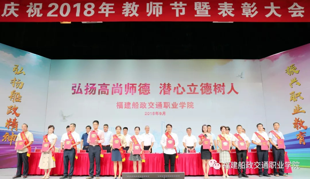 弘揚(yáng)高尚師德,潛心立德樹人。9月10日下午,福建船政交通職業(yè)學(xué)院慶祝2018年教師節(jié)暨表彰大會在文體中心隆重舉行。省教育廳職成處處長張文東、教師工作處處長楊振坦,省經(jīng)信委技術(shù)進(jìn)步處處長陳庚,省交通運輸廳科教處處長張利,教育團(tuán)工委書記蘇貽堆,學(xué)院黨委書記張海明,學(xué)院黨委副書記、院長陳錦輝,學(xué)院黨委副書記韓孟強(qiáng),學(xué)院副院長高汝武、陳貞健、陳艷紅,學(xué)院紀(jì)委書記張輝出席大會。離退休教職工代表、全體教職工、學(xué)生代表參加大會。會議由學(xué)院黨委副書記韓孟強(qiáng)主持。