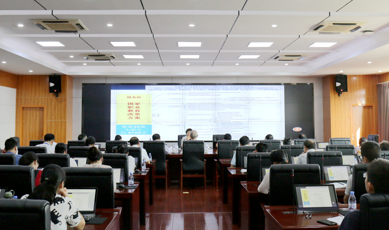 9月25日下午,學(xué)院特邀國家教育行政學(xué)院學(xué)術(shù)委員會主任、職業(yè)教育研究中心主任、中國職教學(xué)會常務(wù)理事、職教學(xué)會學(xué)術(shù)委員會委員、中華職教社常務(wù)理事、專家委員會副主任邢暉教授蒞校作“職業(yè)教育新政策、質(zhì)量提升、團隊建設(shè)”專題講座。院領(lǐng)導(dǎo)張海明、陳錦輝、張輝、陳艷紅出席,全體中層干部,各系主任、書記、教研室主任參加。講座由學(xué)院黨委委員、副院長陳艷紅主持。