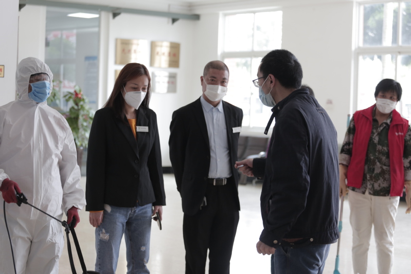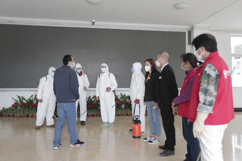 王代榕副主任現(xiàn)場指導物業(yè)人員做好校園辦公樓、教室、食堂等重點場所消殺及消殺注意事項、消殺藥劑的使用和保存等方面工作。