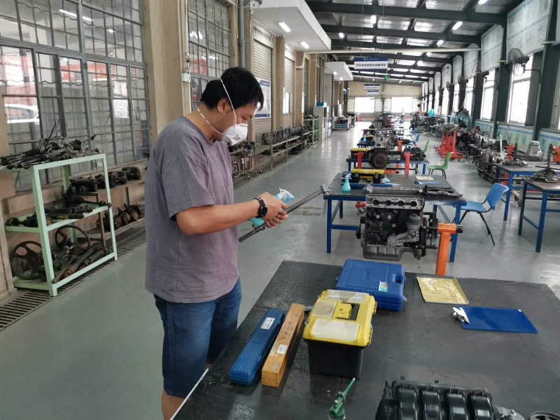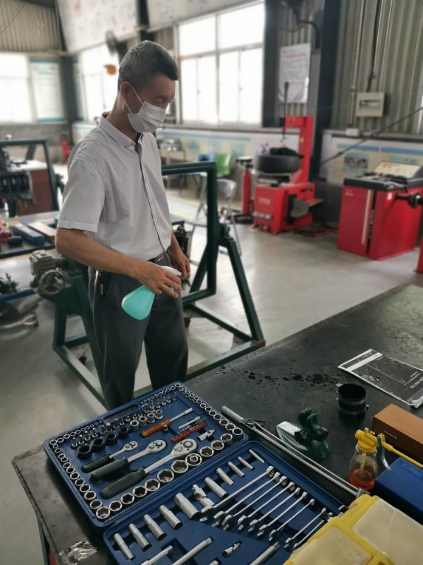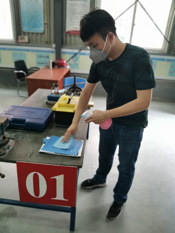 時值疫情防控的關鍵時期,除了完成了布置考試工位,準備考核用的工量具和技術資料等工作,我們開展了對考場的衛(wèi)生清掃和設備消毒工作。