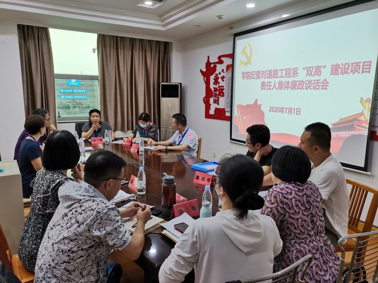 會(huì)議由紀(jì)檢監(jiān)察處副處長(zhǎng)謝翠紅主持。道路工程系、安全技術(shù)與環(huán)境工程系黨總支書(shū)記、系部主任及“雙高”建設(shè)項(xiàng)目相關(guān)負(fù)責(zé)人參加了會(huì)議。