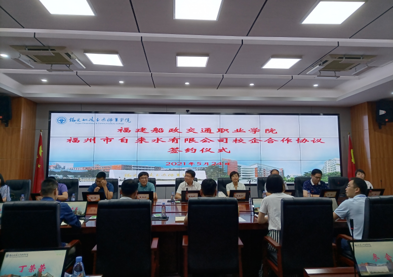 5月24日下午,福建船政交通職業(yè)學(xué)院與福州市自來水有限公司在1號樓6樓會議室成功舉行校企合作簽約儀式。福州市自來水有限公司董事長魏忠慶、總經(jīng)理杜朝丹、副總經(jīng)理陳志宏、總工程師許興中,學(xué)院副院長高汝武,土木工程學(xué)院、機械與智能制造學(xué)院等相關(guān)二級學(xué)院黨政領(lǐng)導(dǎo)出席本次儀式。簽約儀式由土木工程學(xué)院主持。