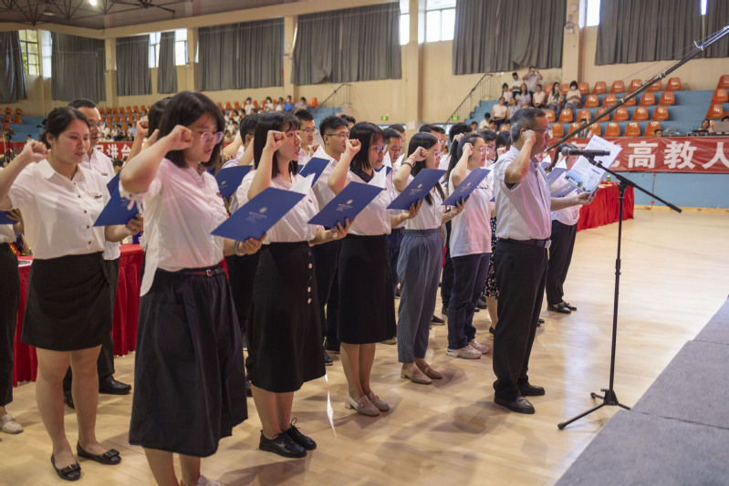 表彰大會(huì)上,在陳常暉教授的領(lǐng)誓下,新進(jìn)教師進(jìn)行了集體入職宣誓儀式。學(xué)院領(lǐng)導(dǎo)為從教三十年教師頒發(fā)榮譽(yù)證書(shū),為本學(xué)年退休人員舉行了光榮退休儀式,并安排新進(jìn)教師代表為他們獻(xiàn)花。
