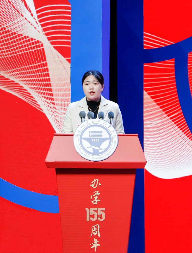 學(xué)生代表王鈺瑩同學(xué)發(fā)言中表達(dá)了對(duì)母校的祝福與感謝,并與全體在校生共勉,爭(zhēng)取早日實(shí)現(xiàn)“今天我以船政為榮,明日船政以我為榮”。
