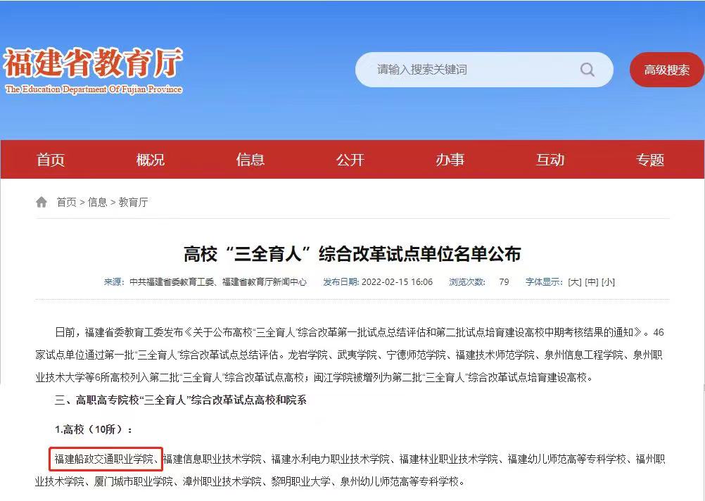 日前,福建省委教育工委發(fā)布《關(guān)于公布高?!叭恕本C合改革第一批試點(diǎn)總結(jié)評估和第二批試點(diǎn)培育建設(shè)高校中期考核結(jié)果的通知》。我院順利通過第一批高?!叭恕本C合改革試點(diǎn)總結(jié)評估。