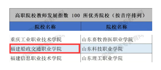 教師是學(xué)校發(fā)展的最寶貴資源。為了進一步引起職業(yè)高等學(xué)校重視教師隊伍建設(shè)和教師專業(yè)發(fā)展,報告首次發(fā)布高職院校教師發(fā)展指數(shù),從教師基礎(chǔ)水平、發(fā)展保障能力、專業(yè)建設(shè)能力、課程教學(xué)能力、科研能力、社會服務(wù)能力等維度構(gòu)建教師發(fā)展指數(shù)模型,在各校提交的質(zhì)量年報數(shù)據(jù)基礎(chǔ)上,結(jié)合狀態(tài)數(shù)據(jù)平臺數(shù)據(jù)和相應(yīng)獲獎數(shù)據(jù),遴選出100所高職院校教師發(fā)展指數(shù)優(yōu)秀院校,引導(dǎo)高職高度重視師資隊伍建設(shè),提升建設(shè)水平。