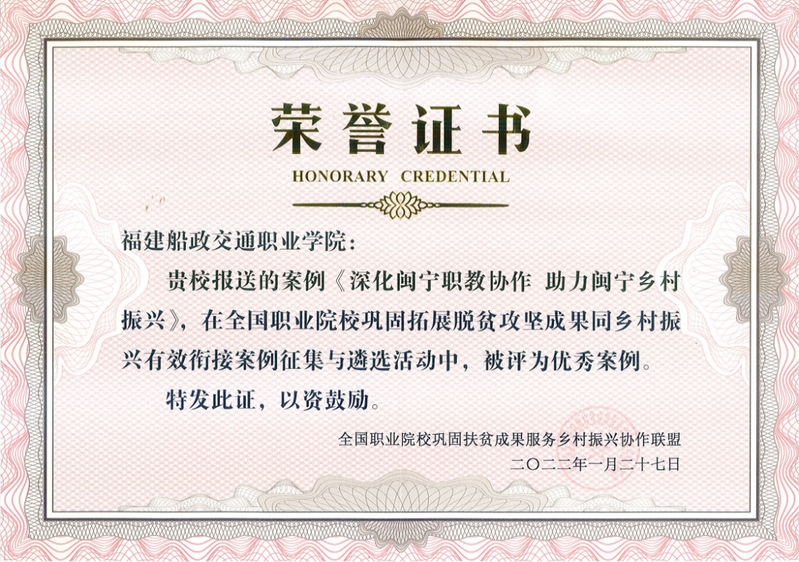 近日,全國職業(yè)院校鞏固扶貧成果服務(wù)鄉(xiāng)村振興協(xié)作聯(lián)盟公布《職業(yè)院校鞏固拓展脫貧攻堅(jiān)成果同鄉(xiāng)村振興有效銜接優(yōu)秀案例》遴選結(jié)果,我院案例《深化閩寧職教協(xié)作 助力閩寧鄉(xiāng)村振興》入選。