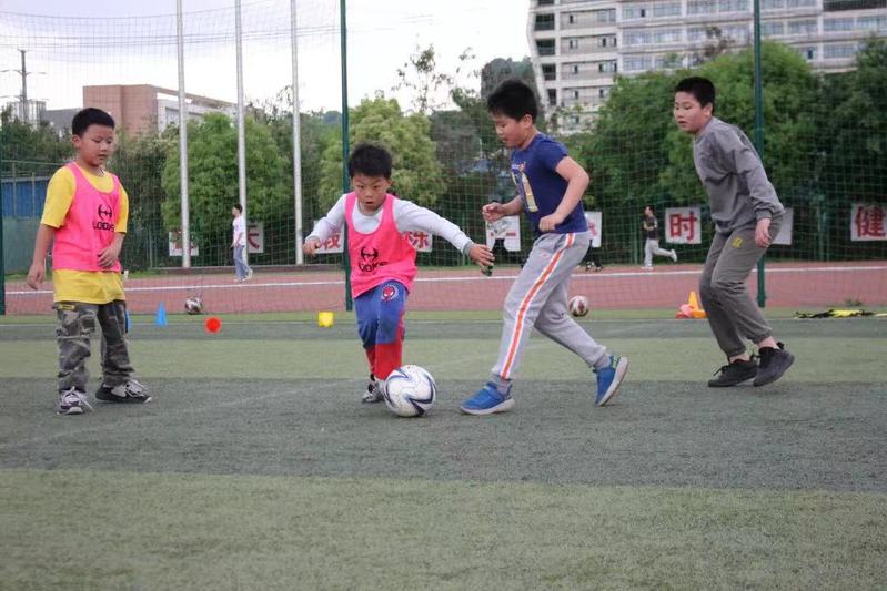 體育趣味班開設(shè)中小學(xué)生足球、跳繩、毽子等活動(dòng),引導(dǎo)鼓勵(lì)孩子們加強(qiáng)體育鍛煉,提高身體素質(zhì),增進(jìn)身心健康。