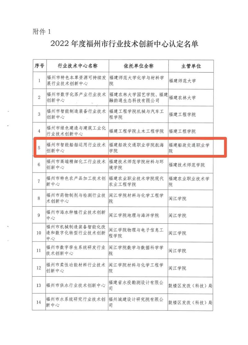 近日,根據(jù)福州市科學(xué)技術(shù)局和福州市工業(yè)和信息化局下發(fā)的《關(guān)于公布2022年度福州市行業(yè)技術(shù)創(chuàng)新中心名單的通知》,我校申報(bào)的“福州市智能船舶運(yùn)用行業(yè)技術(shù)創(chuàng)新中心”獲認(rèn)定。
