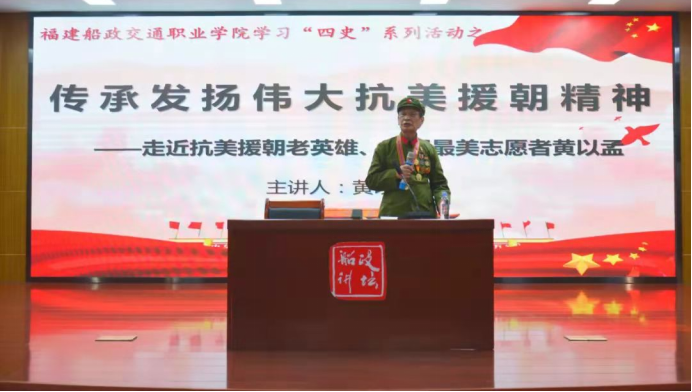 積極組織師生通過線上和線下方式參加相關(guān)知名專家的專題講座,進一步提升四史學(xué)習(xí)理論深度。結(jié)合入黨積極分子培訓(xùn)班、青年馬克思主義者培訓(xùn)班,邀請老教師、老黨員、老干部、老戰(zhàn)士、老勞模等共同上好黨史專題黨課。邀請抗美援朝老英雄、全國最美志愿者、89歲高齡的黃以孟老先生為廣大師生作主題報告;邀請福建省黨史方志辦俞智主任到校為全體思政教師及讀書社、求是社、辯論社等學(xué)生社團成員開展專題討論,了解福建革命史。