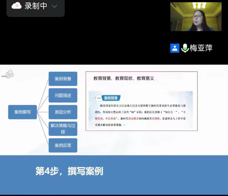 培訓班邀請了6位省內(nèi)外專家授課。全國中等職業(yè)學校班主任能力比賽國賽評委梅亞萍介紹了典型工作案例凝練與撰寫的要點;多次擔任廣東省中職班主任基本功大賽評委的教育碩士李丹重點講解如何做好主題班會設計與錄制;2021年全國職業(yè)院校技能大賽中等職業(yè)學校班主任能力比賽國賽一等獎選手韓靜分享了比賽作品;中國職教學會德育工作委員會常務副主任章宏介紹了如何研制與修改班級建設方案;廣東技術師范大學教授汪永智、福建省職業(yè)技術教育中心培訓部副主任林思煌分別對全國及全省職業(yè)院校技能大賽中等職業(yè)學校班主任能力比賽方案進行了解析和說明。