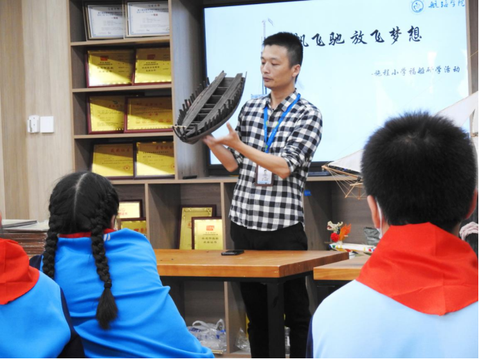在學(xué)院老師的帶領(lǐng)下,孩子們走進機艙親身感受航空服務(wù),走進實訓(xùn)室親手觸摸飛機和汽車發(fā)動機、駕駛360度大型航海模擬器,了解百年船政篳路藍縷的發(fā)展歷程。
