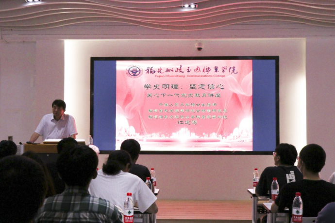 以史為鑒,開創(chuàng)未來。為推動黨史學習教育常態(tài)化長效化開展,以實際行動迎接黨的二十大勝利召開,2022年5月31日下午,學院關工委邀請“五老”代表、中國人民大學碩士生導師、福建省機關黨建研究會特邀研究員、福建船政交通職業(yè)學院原黨委書記江定濤做《學史明理 堅定信心》黨史學習教育專題講座。馬克思主義學院教師代表、習近平新時代中國特色社會主義思想讀書社、船政青年求是社、辯論協(xié)會、法學社等師生百余人參加講座。