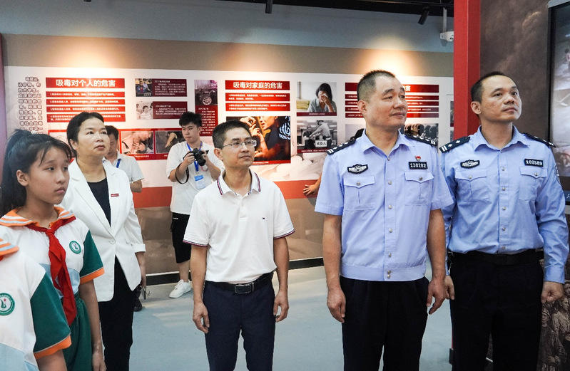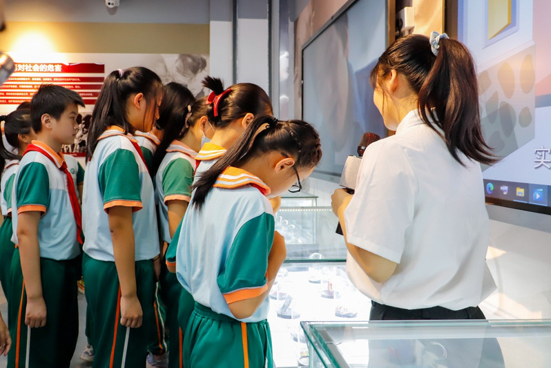 隨后,與會(huì)領(lǐng)導(dǎo)與師大附小及我院學(xué)生代表們一同參觀了禁毒宣教室。