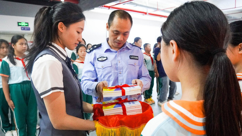 揭牌儀式后,大家在禁毒宣誓墻前莊嚴(yán)宣誓,并向師大附小及我院學(xué)生代表捐贈(zèng)禁毒書籍。