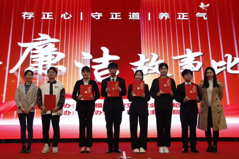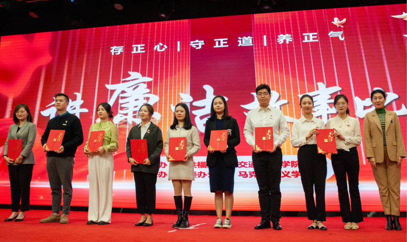 “他是‘立品當(dāng)如山有岳,持身要比玉無瑕’的清廉官員左宗棠?!薄敖乖5撈鸩荨刹?0不準(zhǔn)’是對(duì)特權(quán)思想的批評(píng),是對(duì)‘權(quán)力任性’的約束。”“廉潔從教,鑄魂育人。三尺講臺(tái),擔(dān)起的是育人之責(zé);支支粉筆,書寫的是師者風(fēng)范。”……14位教師演講者先后上臺(tái),圍繞弘揚(yáng)廉潔精神,講述中國(guó)特色的廉潔故事;回溯百年黨史,講述恪守為民的廉潔故事;聚焦船政校史,講述校園廉潔文化建設(shè)的故事。他們以自信大方的臺(tái)風(fēng)、聲情并茂的演講、真摯動(dòng)人的情感贏得現(xiàn)場(chǎng)陣陣掌聲。
