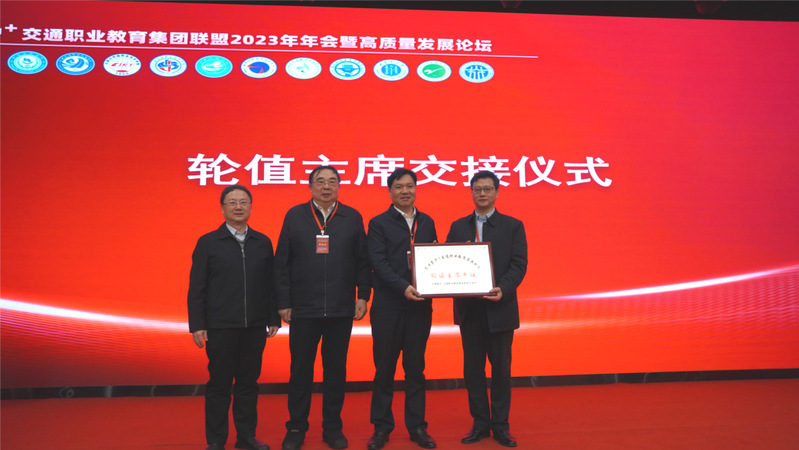 大會舉行了聯(lián)盟輪值主席單位交接儀式。學院黨委副書記、院長陳錦輝將“輪值主席單位牌”移交給南京交通職業(yè)技術(shù)學院院長王道峰。
