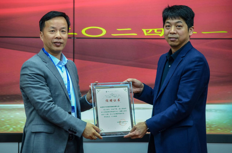 現(xiàn)場,王心金部長向興巖建設集團頒發(fā)了捐贈證書。