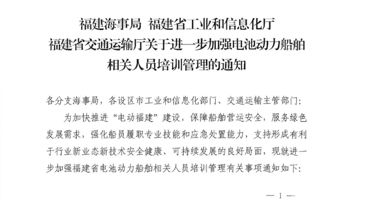近日,福建海事局與福建省工業(yè)和信息化廳、福建省交通運(yùn)輸廳三部門聯(lián)合印發(fā)了《關(guān)于進(jìn)一步加強(qiáng)電池動(dòng)力船舶相關(guān)人員培訓(xùn)管理的通知》(以下簡(jiǎn)稱通知),《通知》明確了將福建船政交通職業(yè)學(xué)院聯(lián)合編制的《福建省電池動(dòng)力船舶船員培訓(xùn)教材》,作為福建省開(kāi)展電池動(dòng)力船舶相關(guān)人員培訓(xùn)的統(tǒng)編教材?!督滩摹分荚谌轿徽宫F(xiàn)電池動(dòng)力船舶的知識(shí)體系、操作準(zhǔn)則、安全管理制度及應(yīng)急處理措施,以此規(guī)范電池動(dòng)力船舶船員培訓(xùn),保障培訓(xùn)效果。