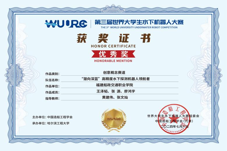 此次比賽匯聚了來自中俄等國的54支代表隊以線上線下的形式激烈角逐。我院學生王澤韜的作品《潛向深藍——高精度水下探測機器人領(lǐng)航者》(指導教師:黃建偉、張文燦)作為全國唯一一所職業(yè)院校參加大賽,并獲優(yōu)秀獎。