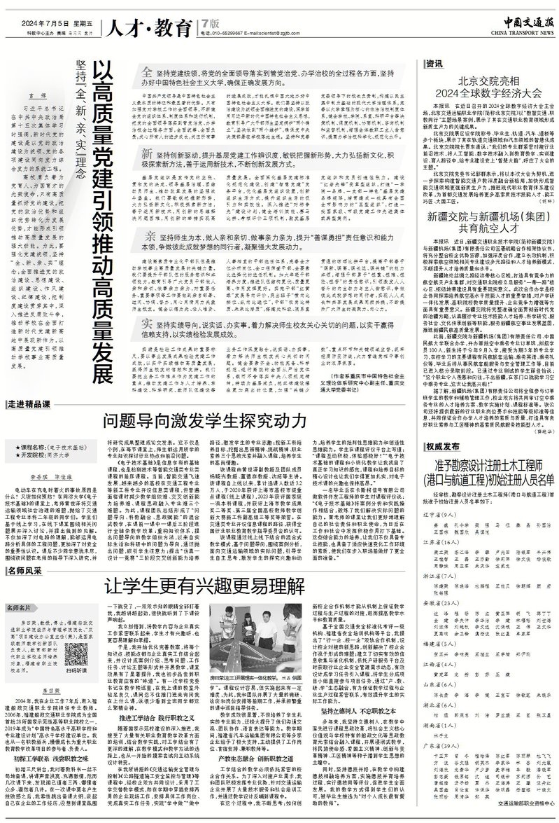 7月5日,《中國交通報》名師風(fēng)采專欄刊發(fā)《讓學(xué)生更有興趣更易理解》文章,對我院房曰榮教授的事跡進行宣傳報道。