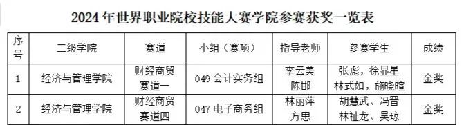 “技炫青春 能創(chuàng)未來”,2024年世界職業(yè)院校技能大賽落下帷幕。本次大賽由教育部牽頭,聯(lián)合35個(gè)國家相關(guān)部委及事業(yè)組織共同主辦,共設(shè)置了42個(gè)賽道,總決賽分爭(zhēng)奪賽、排位賽、冠軍總決賽三個(gè)階段進(jìn)行,其中爭(zhēng)奪賽在全國各地32個(gè)賽區(qū)舉行。我院派出由90名學(xué)生、46名指導(dǎo)老師組成的23支隊(duì)伍,代表福建省參賽。