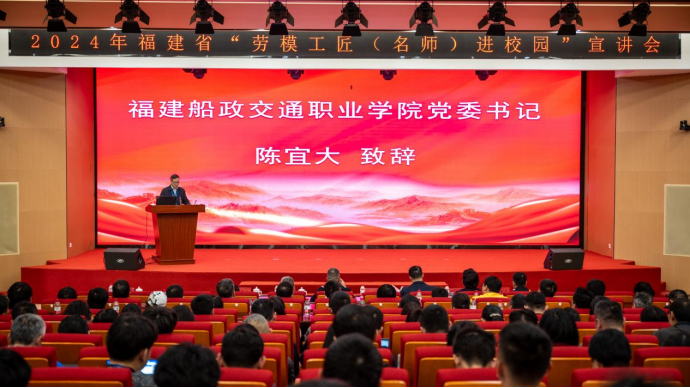 11月27日下午,主題為“勞動光榮·聲動校園”----2024 年福建省“勞模工匠(名師)進(jìn)校園”系列活動---走進(jìn)福建船政交通職業(yè)學(xué)院的活動在我院隆重舉行。本次活動由福建省總工會主辦,福建教育學(xué)院和我院共同承辦。省教科文衛(wèi)體工會工委主任郭立新、省教科文衛(wèi)體工會工委二級調(diào)研員左修坤、福建教育學(xué)院宣傳部部長、工會常務(wù)副主席范光基,學(xué)院黨委書記陳宜大,黨委委員、紀(jì)委書記張輝,黨委委員、副院長陳艷紅出席了本次活動,近300名師生代表參加活動。