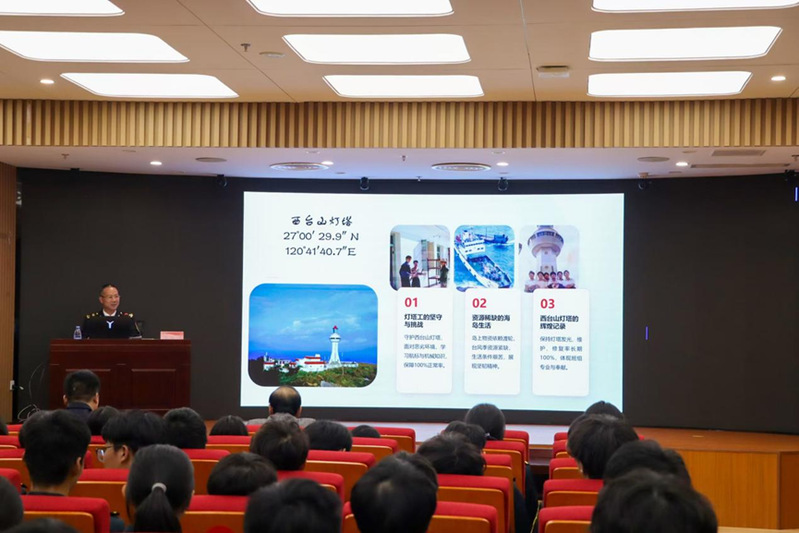 互動(dòng)環(huán)節(jié)結(jié)束后,福州航標(biāo)處馮振剛老師從航海專業(yè)的角度用形象生動(dòng)的案例向在場(chǎng)觀眾詳細(xì)介紹了航標(biāo)處的運(yùn)作情況。他指出要把在課堂上學(xué)到的理論與實(shí)際相結(jié)合,要大力弘揚(yáng)勞模精神、勞動(dòng)精神、工匠精神,不斷提升自身技術(shù)技能水平,以適應(yīng)科技革命和產(chǎn)業(yè)變革的需要,為實(shí)現(xiàn)中華民族偉大復(fù)興的中國(guó)夢(mèng)貢獻(xiàn)自己的青春力量。