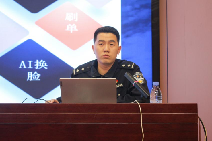 講座中,對(duì)湖派出所林城豪警官從校園反詐的意義、電信詐騙現(xiàn)狀、詐騙的特點(diǎn)、如何做好預(yù)防工作等方面展開,結(jié)合真實(shí)案例為同學(xué)們展示了網(wǎng)購?fù)素?、盜竊QQ冒充好友、京東白條、AI換臉、刷單等常見詐騙類型的作案手法,揭示了電信詐騙的嚴(yán)重性和危害性。他指出,電信詐騙不僅給受害者帶來巨大的經(jīng)濟(jì)損失,更可能導(dǎo)致其陷入絕望和困境。因此,保護(hù)好自己的隱私信息,加強(qiáng)反詐宣傳和教育,提高學(xué)生的防范意識(shí)顯得尤為重要。