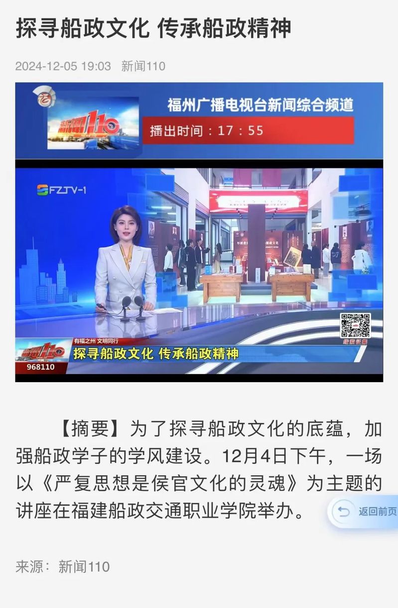 近日, “百年船政尋史跡——‘浩瀚書海研途有你’圖書館研學(xué)系列活動(dòng)”在我院舉辦,以“聽(tīng)一場(chǎng)講座”“觀一場(chǎng)展覽”“看一場(chǎng)電影”“品七天閱讀”“篤踐行”等形式開展,活動(dòng)持續(xù)近一個(gè)月,吸引眾多學(xué)生圍觀、參與,讓學(xué)生們遨游書海的同時(shí),體驗(yàn)了一場(chǎng)探尋船政文化的研學(xué)之旅,受到福州廣播電視臺(tái)《新聞110》欄目的關(guān)注與報(bào)道。