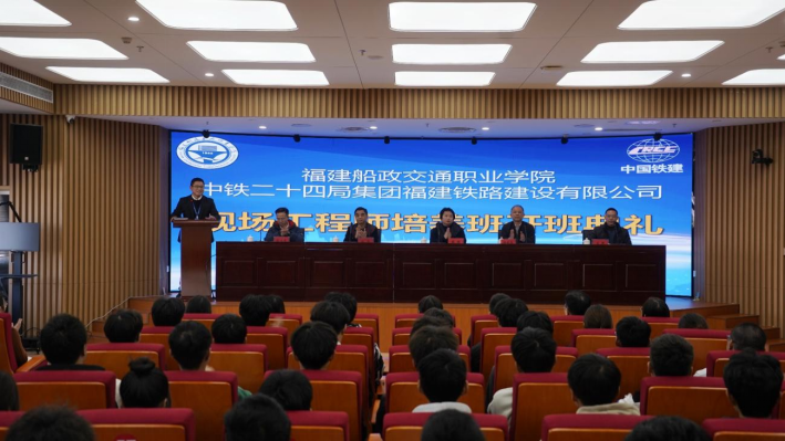 為進(jìn)一步貫徹落實(shí)《教育部辦公廳等五部門(mén)關(guān)于實(shí)施職業(yè)教育現(xiàn)場(chǎng)工程師專項(xiàng)培養(yǎng)計(jì)劃的通知》文件精神,加快培養(yǎng)更多適應(yīng)新技術(shù)、新業(yè)態(tài)、新模式的高素質(zhì)技術(shù)技能人才,近日,由學(xué)院主辦的中鐵二十四局集團(tuán)福建鐵路建設(shè)有限公司現(xiàn)場(chǎng)工程師培養(yǎng)班開(kāi)班典禮在學(xué)院順利舉行。學(xué)院黨委副書(shū)記張輝、中鐵二十四局集團(tuán)福建公司副總經(jīng)理(兼總工程師)林劍忠、黨委干部部(人力資源部)副部長(zhǎng)王燁、軌道交通學(xué)院黨政領(lǐng)導(dǎo)、項(xiàng)目有關(guān)教師和現(xiàn)場(chǎng)工程師班全體學(xué)員出席典禮。