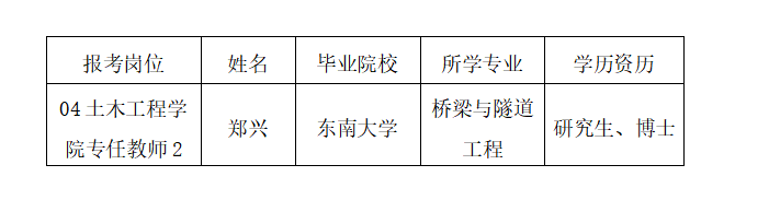 按照《關(guān)于印發(fā)<福建省省屬事業(yè)單位公開招聘工作人員考試暫行辦法>的通知》(閩人發(fā)〔2006〕11號)和《2024年福建船政交通職業(yè)學(xué)院專項公開招聘總量控制高層次人才方案(二)》等文件要求,經(jīng)報名、資格審查、面試、考察、體檢等有關(guān)程序,經(jīng)學(xué)校黨委會議研究,確定鄭興為04土木工程學(xué)院專任教師2擬聘用人員,現(xiàn)予以公示。