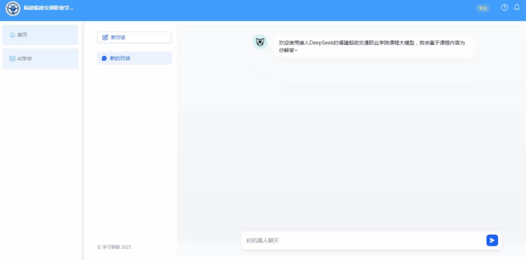 在這一政策背景下,我院積極響應(yīng)國家號召,2月28日,我院信息與智慧交通學(xué)院成功完成“深度求索 DeepSeek-R1”大模型的本地化部署,并正式發(fā)布基于DeepSeek推理的課程大模型平臺。這標志著我院在人工智能技術(shù)賦能職業(yè)教育教學(xué)實踐方面邁出了關(guān)鍵一步,為職業(yè)教育的創(chuàng)新發(fā)展注入了強大動力。