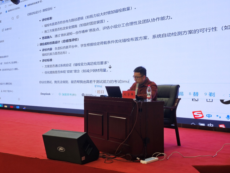 劉學(xué)莘教授圍繞教學(xué)目標(biāo)、學(xué)情分析、教學(xué)問題、課堂創(chuàng)新、考核評(píng)價(jià)等五個(gè)維度深入講解借助DeepSeek等AI技術(shù)優(yōu)化教學(xué)設(shè)計(jì)的路徑和經(jīng)驗(yàn),并現(xiàn)場演示如何利用DeepSeek精準(zhǔn)提煉教學(xué)目標(biāo)、構(gòu)建動(dòng)態(tài)學(xué)情畫像、定位教學(xué)重難點(diǎn)等,現(xiàn)場教師踴躍跟隨操作。