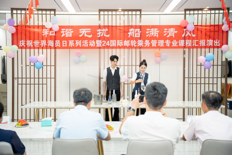 為慶祝世界海員日并檢驗教學成果,6月18日,航海學院在郵輪五高訓練中心一期成功舉辦了“和諧無擾 船滿清風”世界海員日系列活動暨24級國際郵輪乘務管理專業(yè)課程匯報演出。航海學院領導、行業(yè)專家及師生代表出席了本次活動。