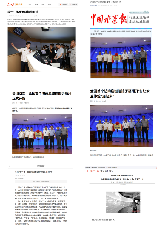 媒體聚焦 | 人民日?qǐng)?bào)、中國(guó)水運(yùn)報(bào)、中國(guó)海事、東南網(wǎng)、新福建、福州晚報(bào)等主流媒體報(bào)道全國(guó)首個(gè)防商漁碰撞館在學(xué)院開(kāi)館