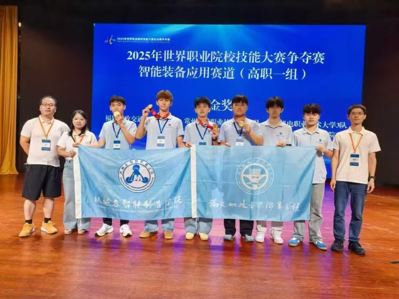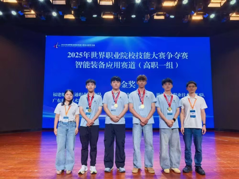 8月20日至26日,2025年世界職業(yè)院校技能大賽總決賽爭奪賽智能裝備應(yīng)用賽道(高職組)在浙江圓滿落幕。本次智能裝備應(yīng)用賽道匯聚全國 205 支隊(duì)伍同臺競技,共同展開專業(yè)技能的精英對決。由我院曾思通、童曉薇、胡恒、林俊杰等教師團(tuán)隊(duì)指導(dǎo),陳世衛(wèi)、陳育凱、林煒晨、鄧越四名學(xué)生組成的參賽團(tuán)隊(duì),憑借扎實(shí)的專業(yè)功底、默契的團(tuán)隊(duì)協(xié)作與穩(wěn)定的臨場發(fā)揮,成功斬獲該賽道金獎。