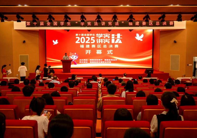 9月27日-28日,第十屆全國學生“學憲法講憲法”福建賽區(qū)總決賽在我院召開。本次比賽由福建省教育廳、福建省司法廳主辦,福建船政交通職業(yè)學院承辦。福建省教育廳二級巡視員王越忠出席并講話,福建省司法廳副廳長官文勝,福建船政交通職業(yè)學院黨委書記陳宜大、院長陳群,省教育廳政策法規(guī)與行政審批處處長王飛,省司法廳普法與依法治理處三級調(diào)研員李志強出席開幕式。全省各地市教育局分管法治工作的副局長、法規(guī)科負責人,以及入圍總決賽的250多名大中小學生選手與指導老師參加了本次活動。
