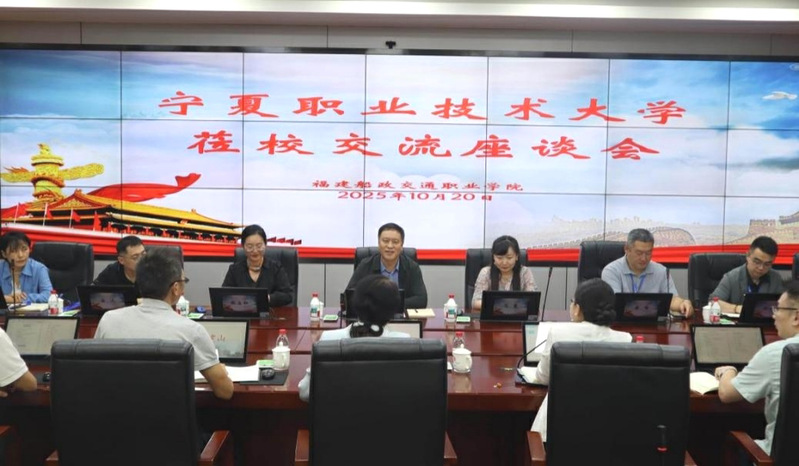 為深入貫徹落實(shí)閩寧教育對口協(xié)作機(jī)制,不斷拓展兩校合作交流內(nèi)涵,10月20日,寧夏職業(yè)技術(shù)大學(xué)黨委委員、紀(jì)委書記馬建榮率掛職團(tuán)隊(duì)蒞校開展調(diào)研交流。學(xué)院黨委副書記、院長陳群,紀(jì)委書記謝建山,副院長陳艷紅出席交流活動。寧夏職業(yè)技術(shù)大學(xué)教務(wù)處、組織人事部負(fù)責(zé)同志及11名掛職干部,學(xué)院雙高辦、人事處、教務(wù)處、科技處、數(shù)據(jù)中心、機(jī)械與智能制造學(xué)院、信息與智慧交通學(xué)院、經(jīng)濟(jì)與管理學(xué)院、馬克思主義學(xué)院、教師工作部負(fù)責(zé)同志參加了交流活動。