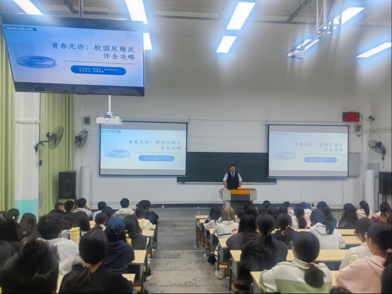 講座緊扣“青春無(wú)詐”主題,結(jié)合講師多年金融反詐實(shí)踐經(jīng)驗(yàn),以“精準(zhǔn)識(shí)騙、優(yōu)化管理、防護(hù)普法、升級(jí)反詐、反詐急救、踐行反詐”六大板塊為框架展開(kāi):從“冒充客服退款”“刷單返利”等學(xué)生群體常見(jiàn)騙局的識(shí)別技巧,到校園賬戶安全管理、個(gè)人信息保護(hù)的具體方法;從《反電信網(wǎng)絡(luò)詐騙法》等法規(guī)解讀,到遭遇詐騙后的緊急止損流程;再到倡導(dǎo)“全民反詐”理念、鼓勵(lì)師生主動(dòng)參與宣傳,內(nèi)容既具專(zhuān)業(yè)性又貼近日常,為師生織密反詐“知識(shí)網(wǎng)”。通過(guò)真實(shí)案例剖析、結(jié)合學(xué)生的興趣熱點(diǎn)互動(dòng),將晦澀的反詐要點(diǎn)轉(zhuǎn)化為易懂的生活指南,現(xiàn)場(chǎng)師生積極提問(wèn),氛圍熱烈。