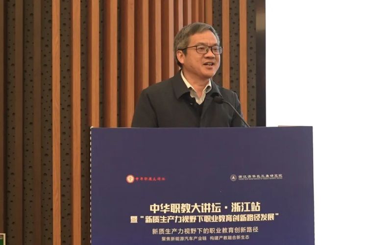 12月6日,由中華職業(yè)教育社指導(dǎo),《教育與職業(yè)》雜志社主辦、浙江清華長三角研究院承辦、浙江省和嘉興市中華職業(yè)教育社協(xié)辦的“中華職教大講壇”在研究院清華講堂順利舉行。活動(dòng)以“新質(zhì)生產(chǎn)力視野下職業(yè)教育創(chuàng)新發(fā)展路徑”為主題,來自北京、上海、江蘇、浙江、廣東、福建、海南、貴州等地代表,與新能源汽車、低空經(jīng)濟(jì)等新質(zhì)生產(chǎn)力領(lǐng)域?qū)<?,職業(yè)院校、行業(yè)企業(yè)負(fù)責(zé)人圍繞職業(yè)教育融合新質(zhì)生產(chǎn)力的發(fā)展路徑與方法進(jìn)行了交流探討。學(xué)院黨委書記陳宜大受邀作典型經(jīng)驗(yàn)交流發(fā)言。