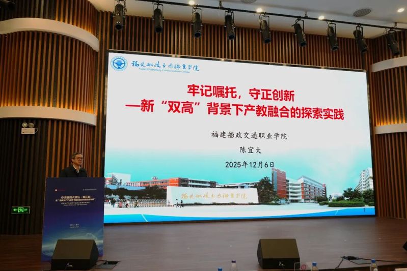 在活動(dòng)交流環(huán)節(jié),陳宜大以《牢記囑托 守正創(chuàng)新——新“雙高”背景下產(chǎn)教融合的探索實(shí)踐》為題,從“產(chǎn)教融合的時(shí)代要求”“船政學(xué)堂的辦學(xué)歷史和產(chǎn)教融合”“福建船政交通職業(yè)學(xué)院產(chǎn)教融合的實(shí)踐”三個(gè)層面,詳細(xì)介紹了學(xué)院傳承船政學(xué)堂“廠校一體、工學(xué)結(jié)合”的辦學(xué)理念,以“辦學(xué)能力高水平、產(chǎn)教融合高質(zhì)量”為導(dǎo)向,在優(yōu)化專業(yè)結(jié)構(gòu)布局、創(chuàng)新產(chǎn)教融合新路徑、構(gòu)建技術(shù)技能服務(wù)平臺等方面所開展的一系列富有成效的實(shí)踐探索,引起了行業(yè)專家、職教同仁以及企業(yè)代表的廣泛共鳴。