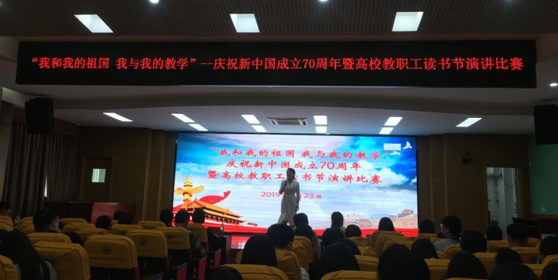 分會(huì)場(chǎng)設(shè)在行政樓6樓學(xué)術(shù)報(bào)告廳,舉行了“我和我的祖國(guó) 我與我的教學(xué)” 慶祝新中國(guó)成立70周年暨高校教職工讀書節(jié)演講比賽。本次演講比賽全省17所高校進(jìn)入決賽,全場(chǎng)比賽以從踐行社會(huì)主義核心價(jià)值觀和中華民族文化自信為切入點(diǎn),結(jié)合日常學(xué)科教育教學(xué)方法,準(zhǔn)確流暢的語言表達(dá)、自然樸實(shí)的體姿,展示教師們良好的精神風(fēng)貌。