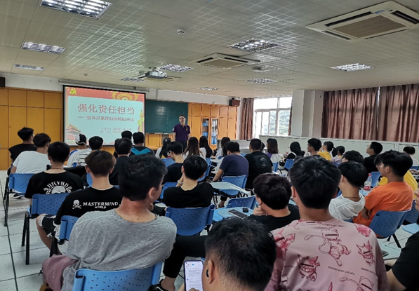 2020年6月23日安全技術(shù)與環(huán)境工程系副主任(主持工作)陳明仙教授為復(fù)學(xué)返校的18級(jí)學(xué)生舉行了一場(chǎng)以“強(qiáng)化責(zé)任擔(dān)當(dāng)——堅(jiān)決打贏疫情防控阻擊戰(zhàn)”為主題的形勢(shì)與政策講座。