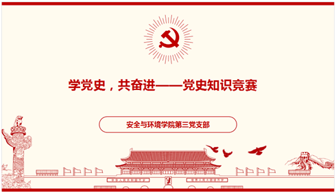 為慶祝建黨100周年,鼓勵(lì)支部黨員教師做到學(xué)史明理、學(xué)史增信、學(xué)史崇德、學(xué)史力行,學(xué)黨史、悟思想、辦實(shí)事、開新局,以昂揚(yáng)姿態(tài)奮力開啟全面建設(shè)社會(huì)主義現(xiàn)代化國(guó)家新征程,322日,安全與環(huán)境學(xué)院第三黨支部開展了“學(xué)黨史、共奮進(jìn)”黨史知識(shí)競(jìng)賽。