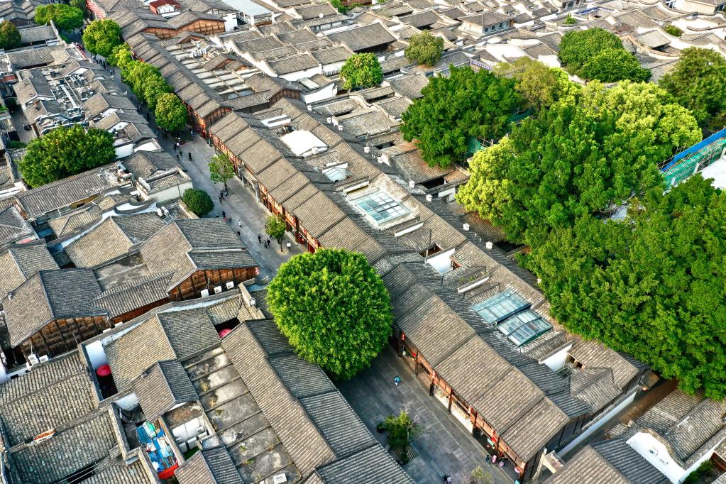 福州三坊七巷文化街區(qū)的古厝綠樹(2021年3月17日攝,無人機(jī)照片)。 新華社記者姜克紅攝