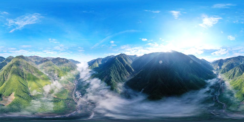 2020年12月1日,武夷斷裂帶峽谷內(nèi)云霧繚繞,村莊若隱若現(xiàn)(無人機(jī)拼接照片)。新華社記者姜克紅攝