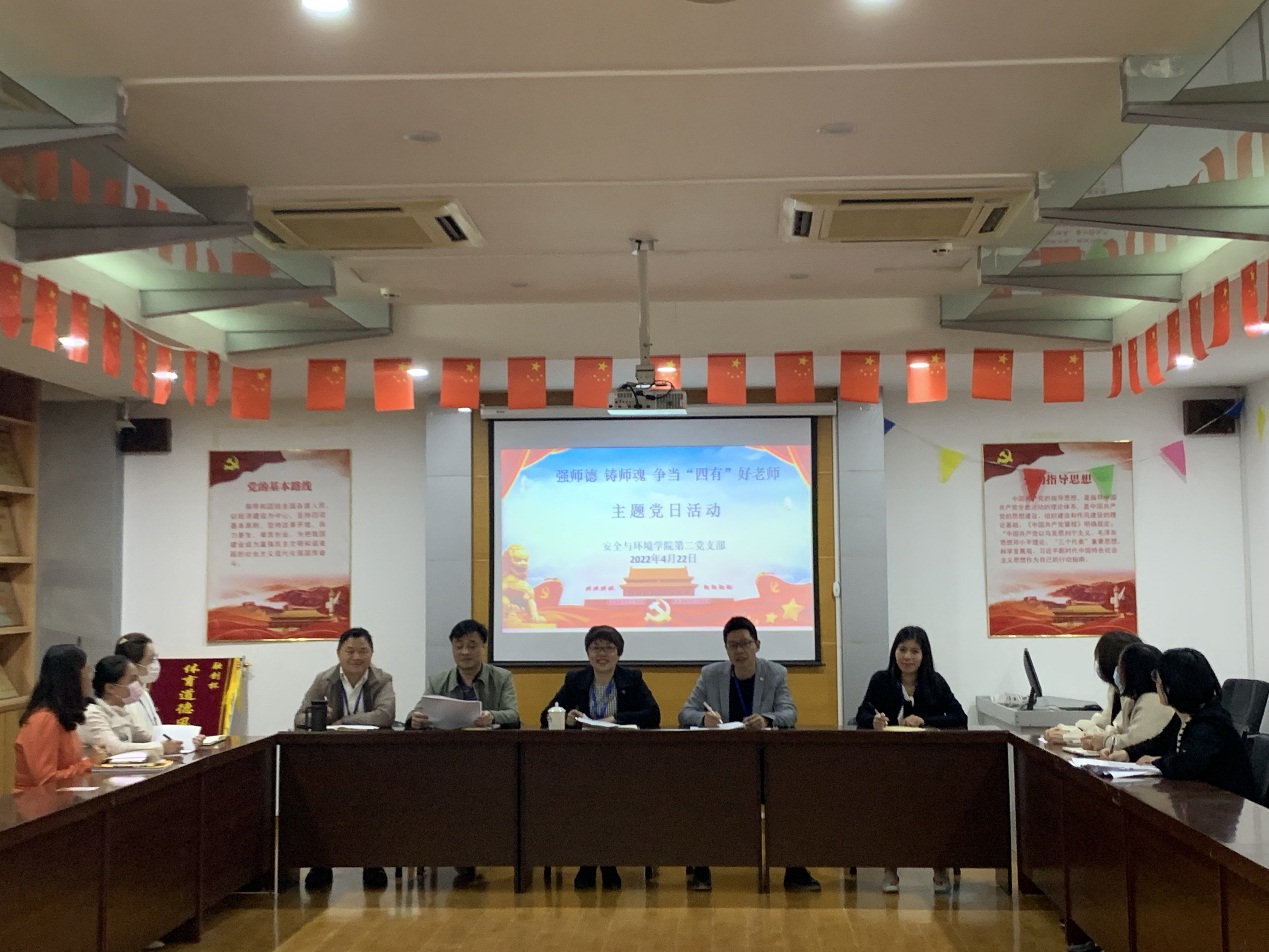為深入貫徹落實(shí)習(xí)近平總書記關(guān)于教育的重要論述,進(jìn)一步加強(qiáng)黨對(duì)高校工作的領(lǐng)導(dǎo),根據(jù)中共教育部黨組印發(fā)的《關(guān)于完善高校教師思想政治和師德師風(fēng)建設(shè)工作體制機(jī)制的指導(dǎo)意見(jiàn)》(教黨〔2021〕79號(hào))文件精神,安全與環(huán)境學(xué)院第二黨支部于2022年4月22日開(kāi)展了“強(qiáng)師德 鑄師魂”爭(zhēng)當(dāng)“四有”好老師主題黨日活動(dòng)。引導(dǎo)廣大教師立足本職工作,牢記教書育人的初心使命,加強(qiáng)自身師德修養(yǎng),認(rèn)真履職,敬業(yè)奉獻(xiàn),做到“恪守底線,不越紅線,不碰高壓線”。