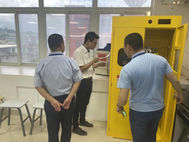 陳明仙院長重點(diǎn)檢查了?;反娣?、氣瓶的保管使用,以及水、電、氣和儀器設(shè)備的安全使用等,并要求實訓(xùn)中心要做好暑假期間的安全工作,對于安全隱患要及時發(fā)現(xiàn),及時反饋,及時整改。院長著重強(qiáng)調(diào),要高度重視實驗(訓(xùn))室安全工作;要進(jìn)一步完善管理制度,確保暑期實驗(訓(xùn))室安全;要落實安全責(zé)任制度,做好安全保障。